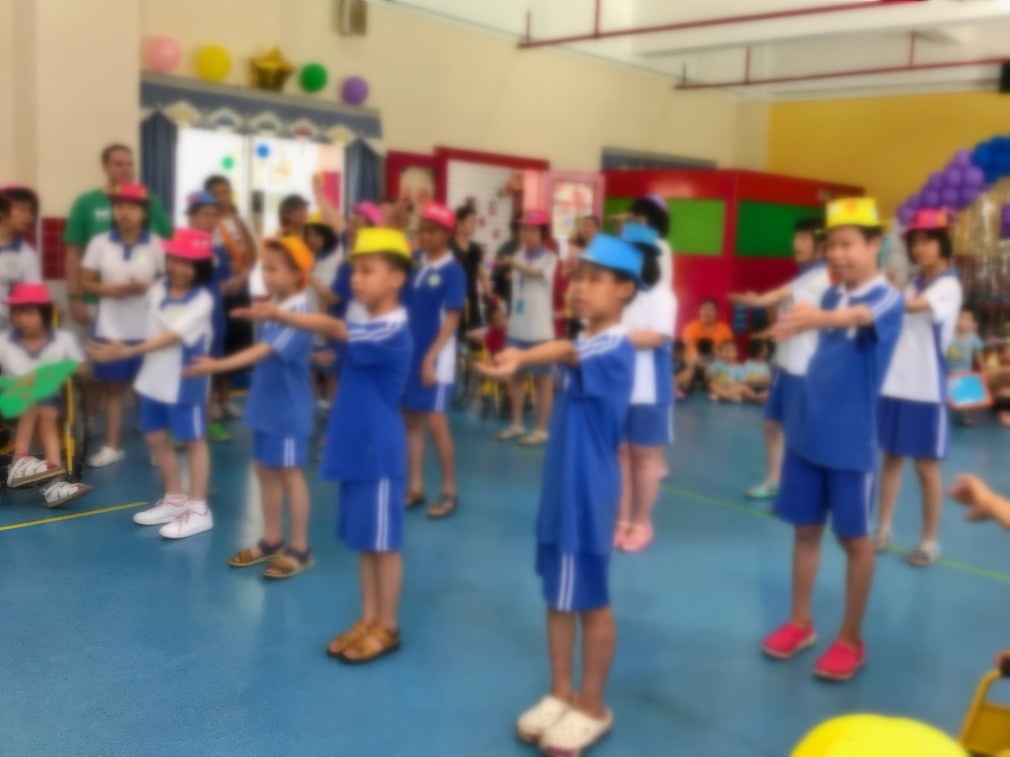 活動(dòng)結(jié)束時(shí),這群可愛的小朋友們?yōu)榇蠹冶硌萘耸终Z操。他們掛在臉上的笑容和那份陽光活潑不禁讓現(xiàn)場(chǎng)的每一位志愿者為之動(dòng)容。