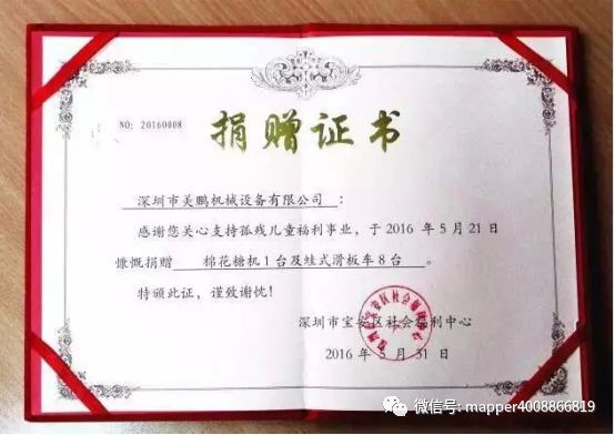 2015年兒童節(jié),美鵬愛心公益基金會(huì)參加了“包包里的陽光”項(xiàng)目,為陽光學(xué)校的20名小孩捐助兒童節(jié)禮物。6月1日美鵬愛心公益基金會(huì)受邀參加寶安陽光公益學(xué)校舉辦的兒童節(jié)派對(duì)。