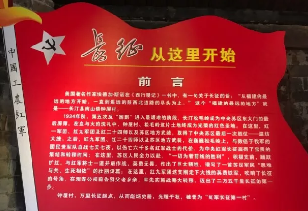 松毛嶺下的長(zhǎng)汀縣南山鎮(zhèn)中復(fù)村,是紅軍長(zhǎng)征重要出發(fā)地之一。1934年9月30日,中央紅軍第九軍團(tuán)從這里開(kāi)始長(zhǎng)征的歷史。