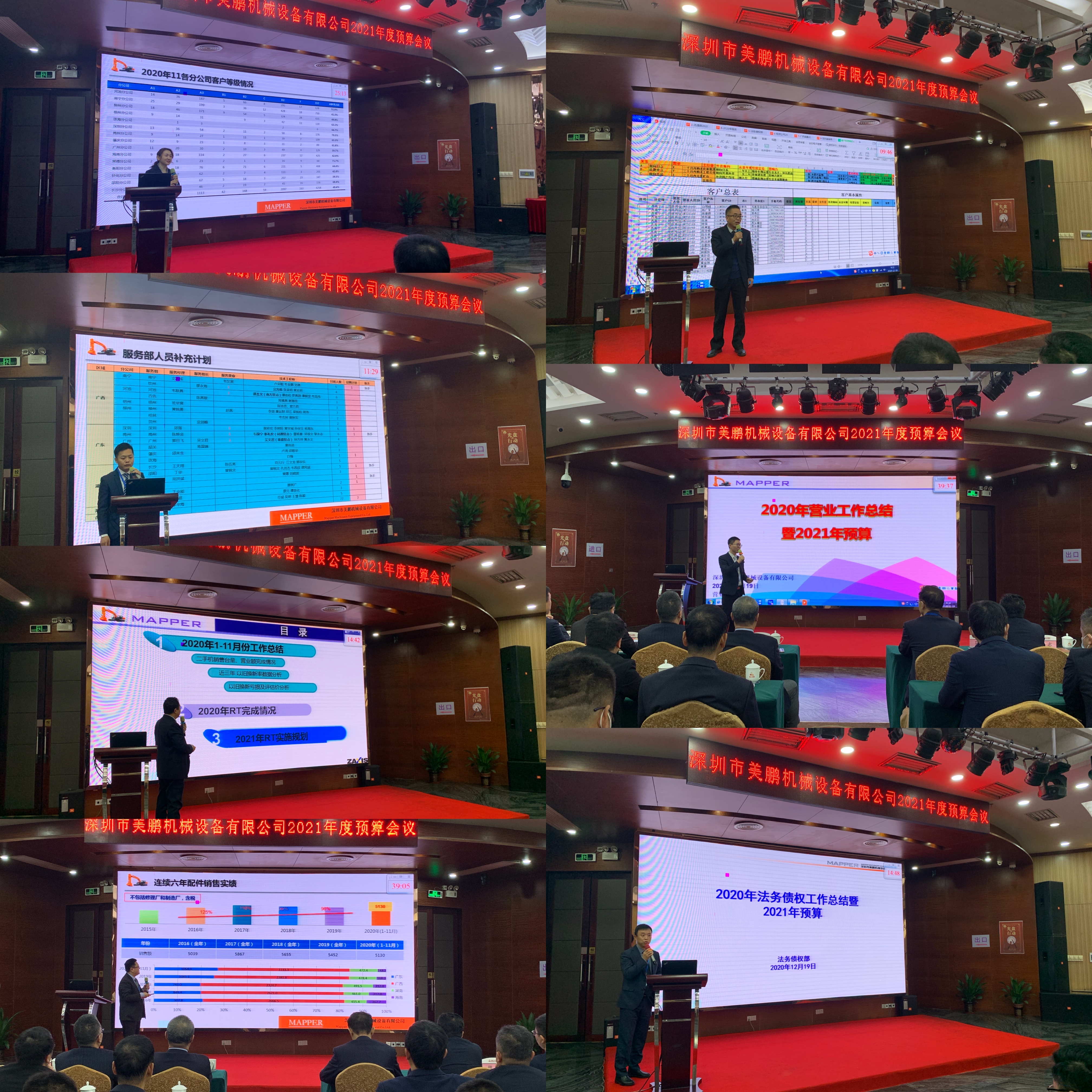 總公司全體人員、各分公司經(jīng)理和服務(wù)經(jīng)理及先進(jìn)人員參加了本次預(yù)算會(huì)議。會(huì)上,各部門分別就2020年各項(xiàng)目標(biāo)任務(wù)完成的情況,進(jìn)行了總結(jié)性的匯報(bào)及分析;并對接下來2021年每項(xiàng)工作做出了詳盡的計(jì)劃。